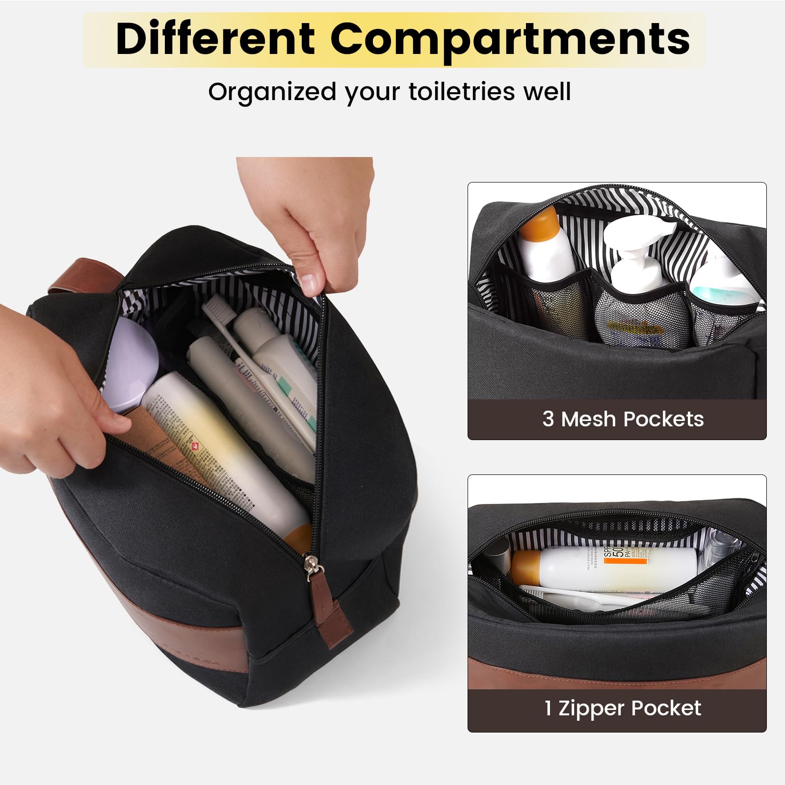 Details make comfort: The PU leather handle makes the travel bag for toiletries easier to carry and hang, smooth zipper and convenient zipper ear make it easier to hold and zip up and down, it is a suitable travel accessory for men and women