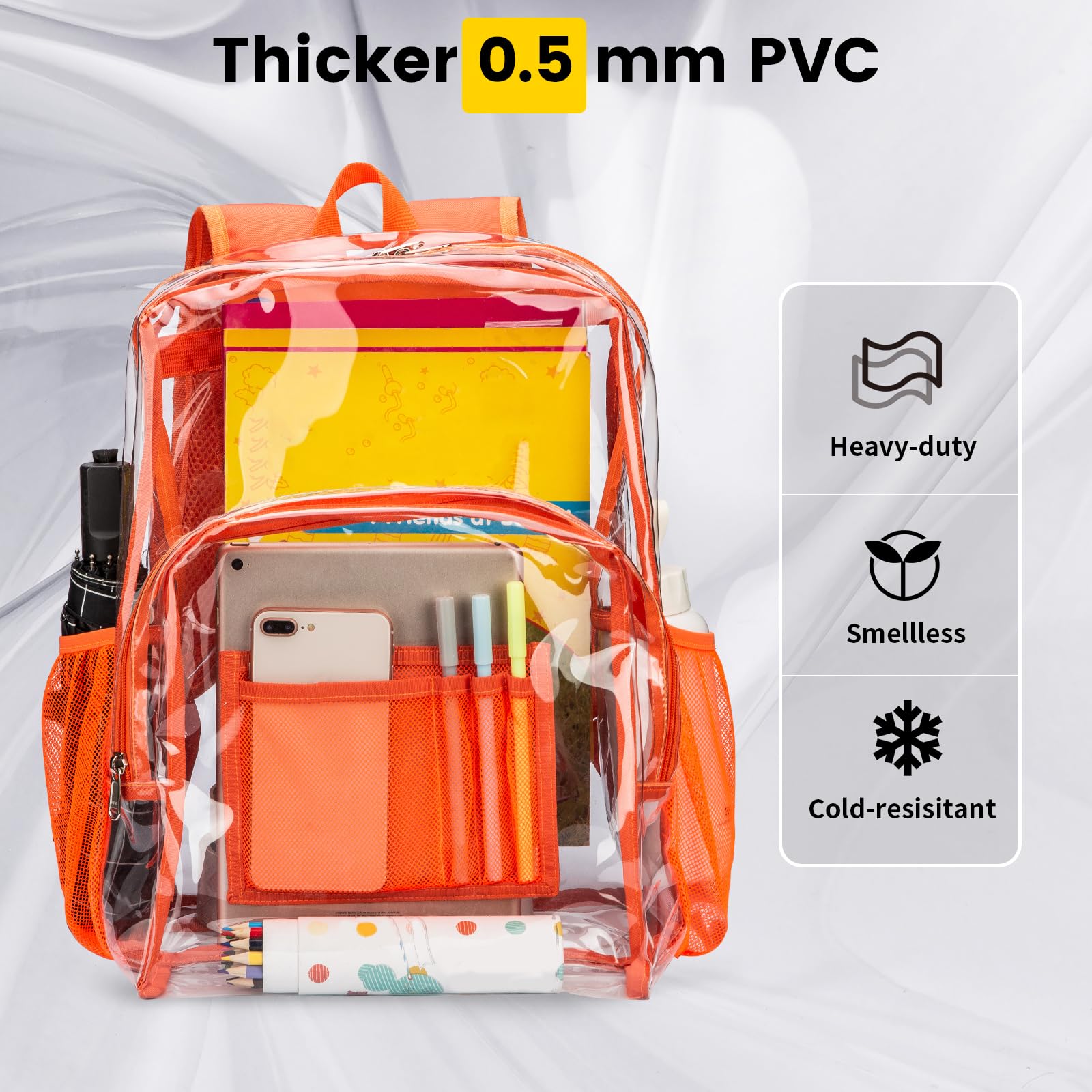 Thicker PVC material: Vorspack clear bookbags are made of smell-less thicker clear PVC material, which is sturdy enough for everyday use. And, the transparent backpack is both heavy duty and soft that you can fold it as you need, it would not crack even in cold weather