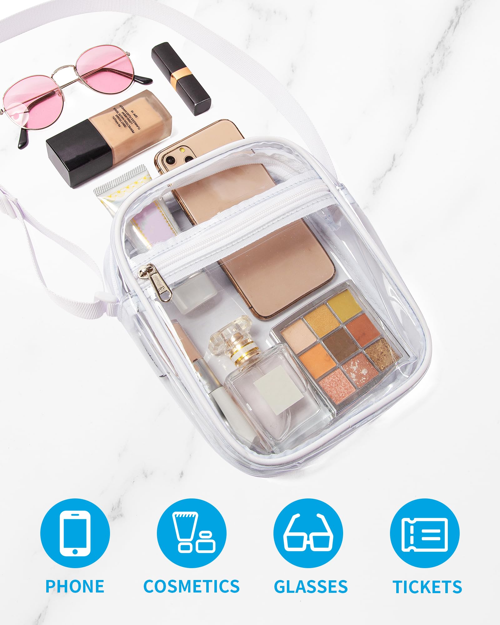 Quality thicker PVC material: Our clear crossbody bag is made of 0.5 mm PVC material for a longer service life makes it durable and sturdy, it will not fracture even in freezing temperatures and will protect your things from splashing water
