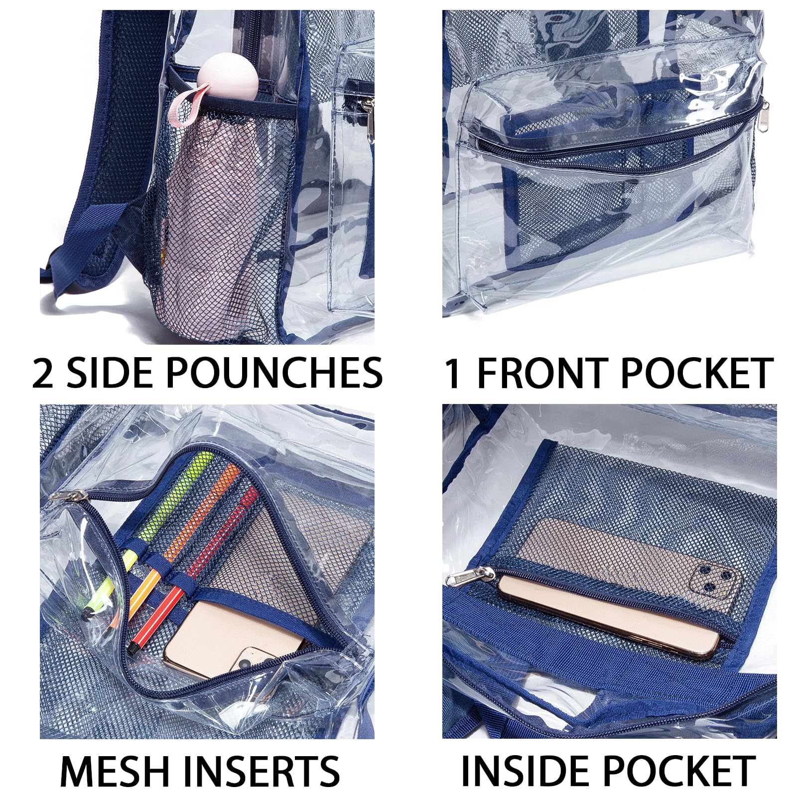 Multipurpose Use: You can use this see-through backpack for multi-occasions such as colleges, workplaces, sporting events, concerts, camping, beaches, airports, and travel. It's roomy enough to store all the necessities