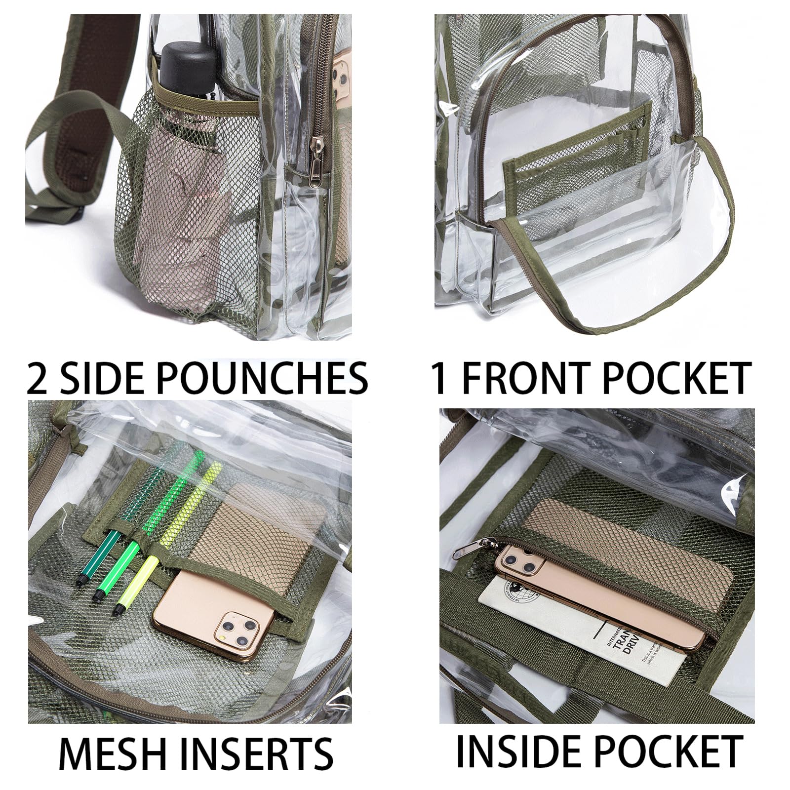 Multi-purpose for various occasions: You can carry this transparent backpack at colleges and workplace. It's roomy enough to store all the necessities, and it could provide a quick check and easy access