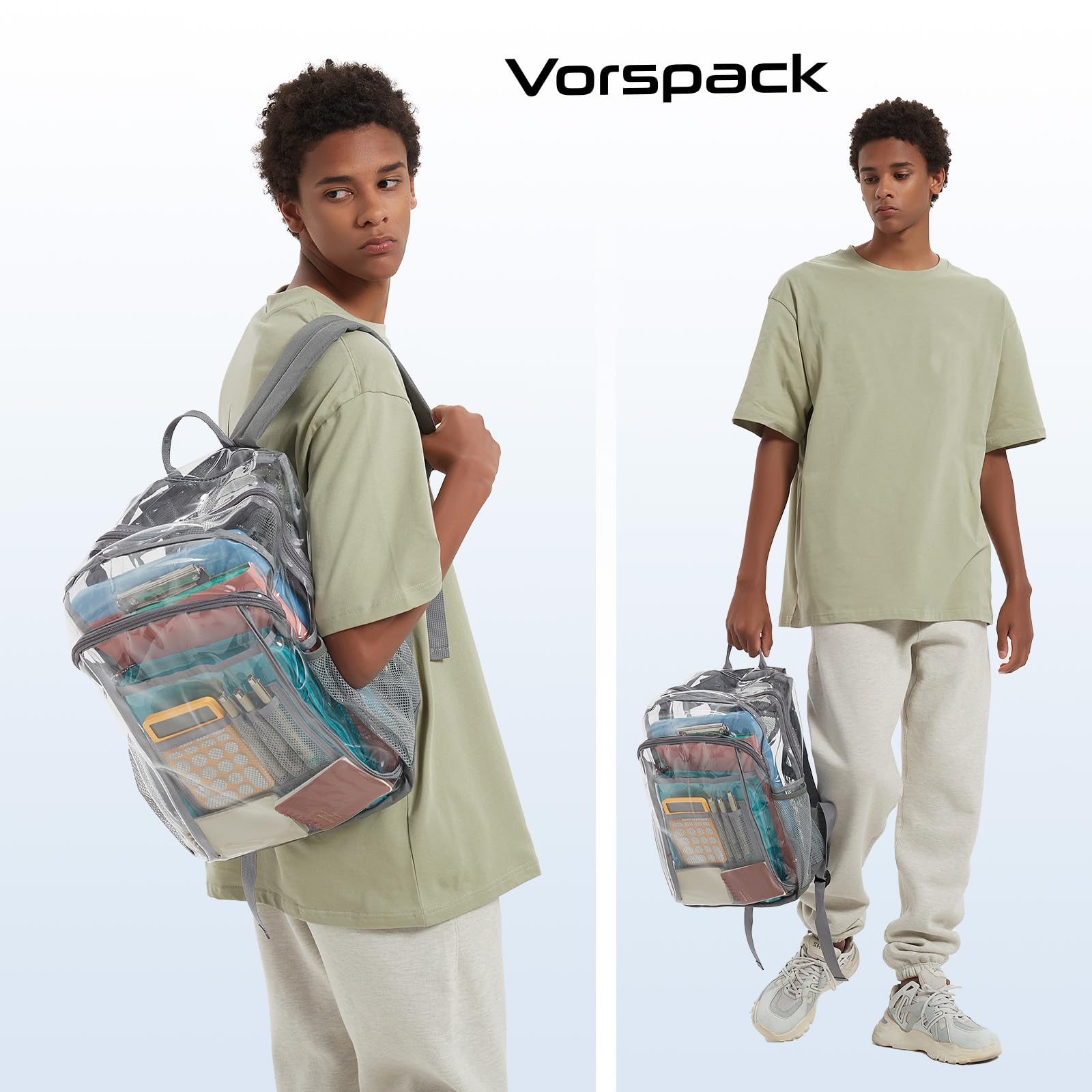 Multi-pocket design: This see through backpack has a main compartment that holds binders, laptops, and books, while a zipper pocket keeps your wallet and keys secure. The large front pocket, with a big pouch for notepads and 4 small pouches for pens and a calculator. Besides, the clear bookbag has 2 side pockets for water bottles and umbrellas