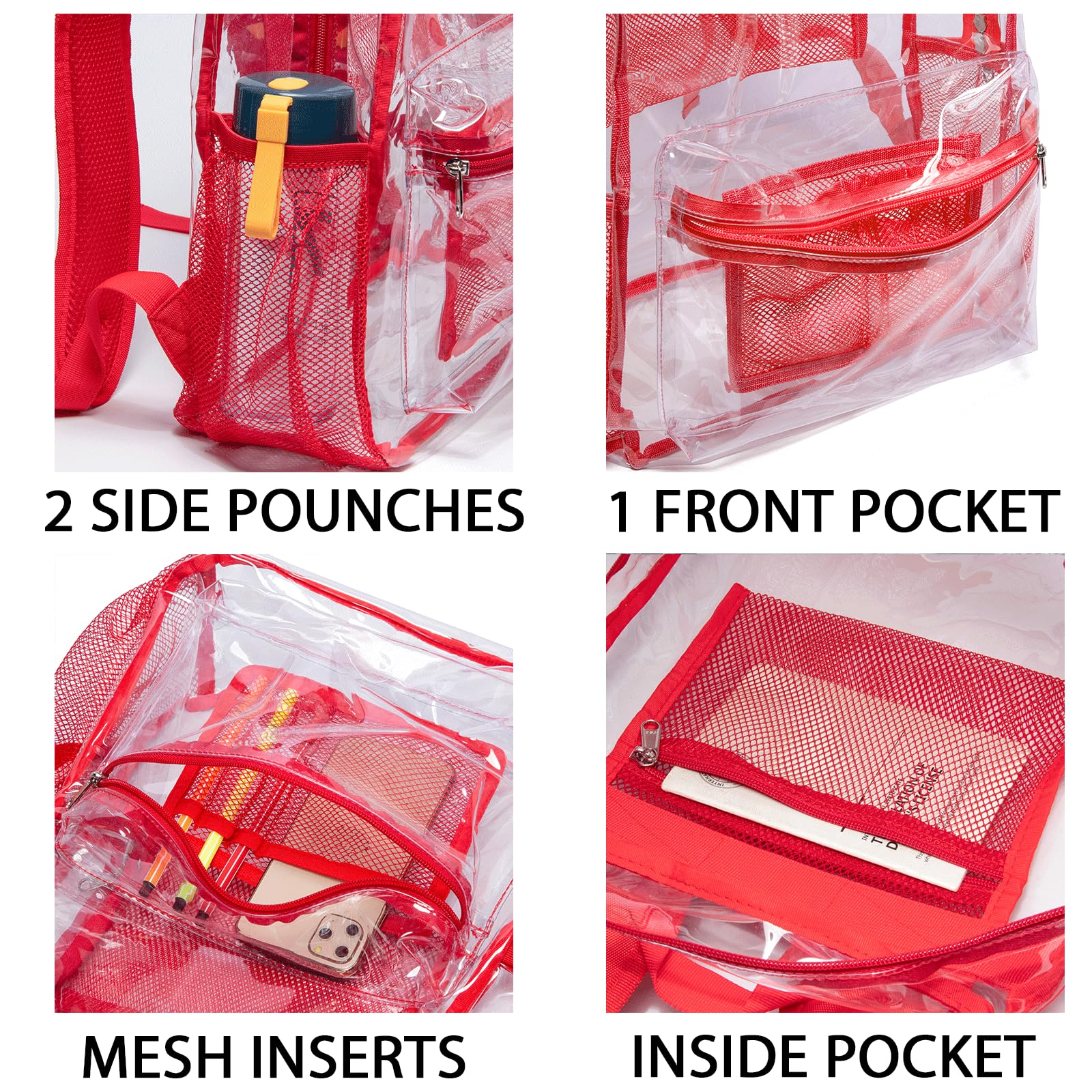 Multipurpose Use: You can use this see-through backpack for multi-occasions such as colleges, workplaces, sporting events, concerts, camping, beaches, airports, and travel. It's roomy enough to store all the necessities