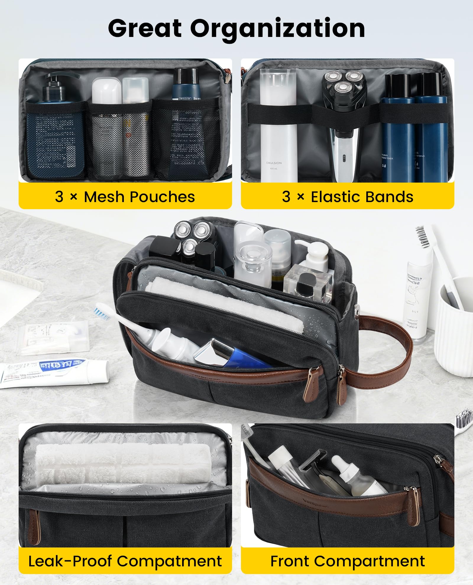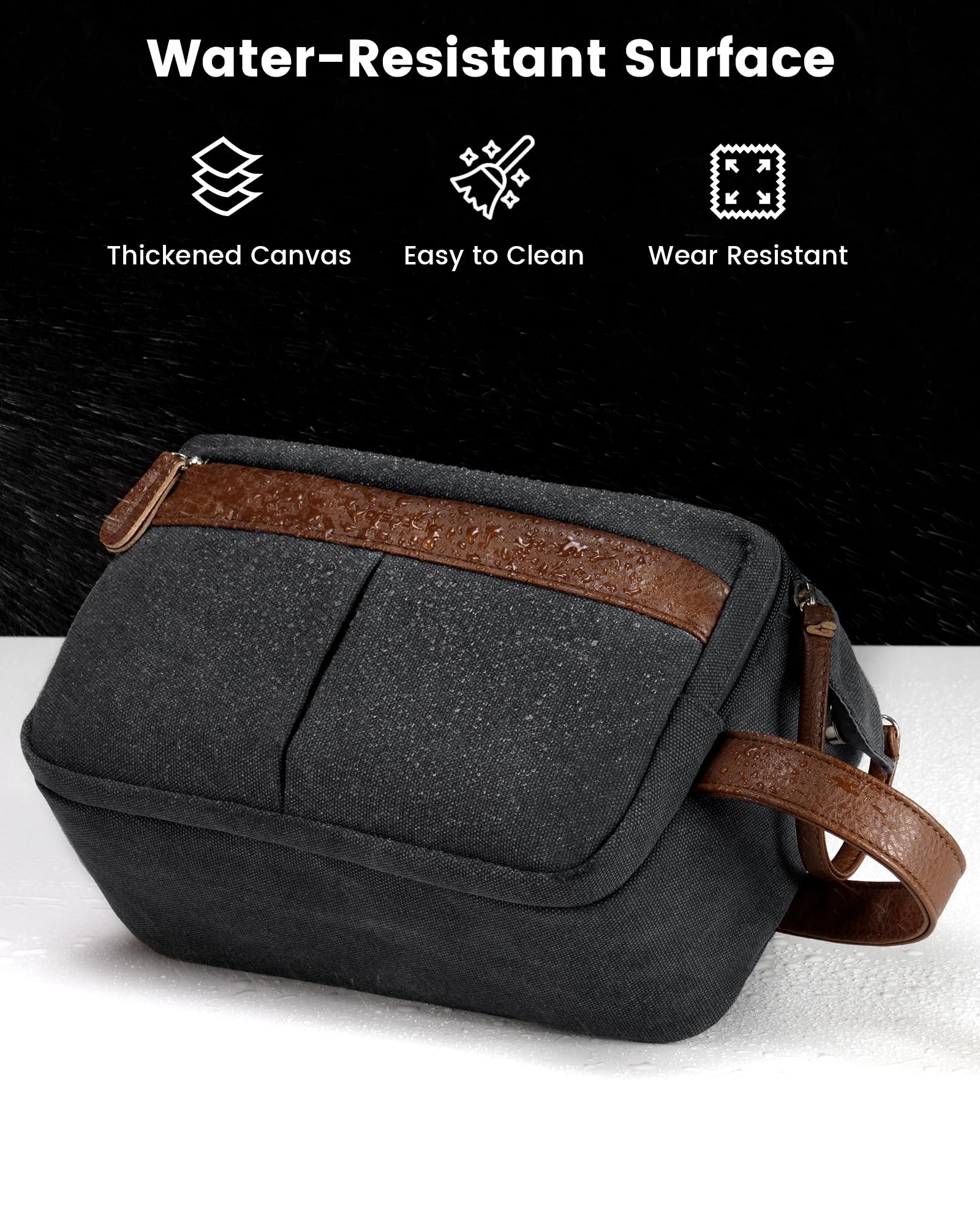 Vorspack Canvas Toiletry Bag for Men - Water Resistant Travel Bag for Toiletries, Bathroom Essentials, Accessories - Grey