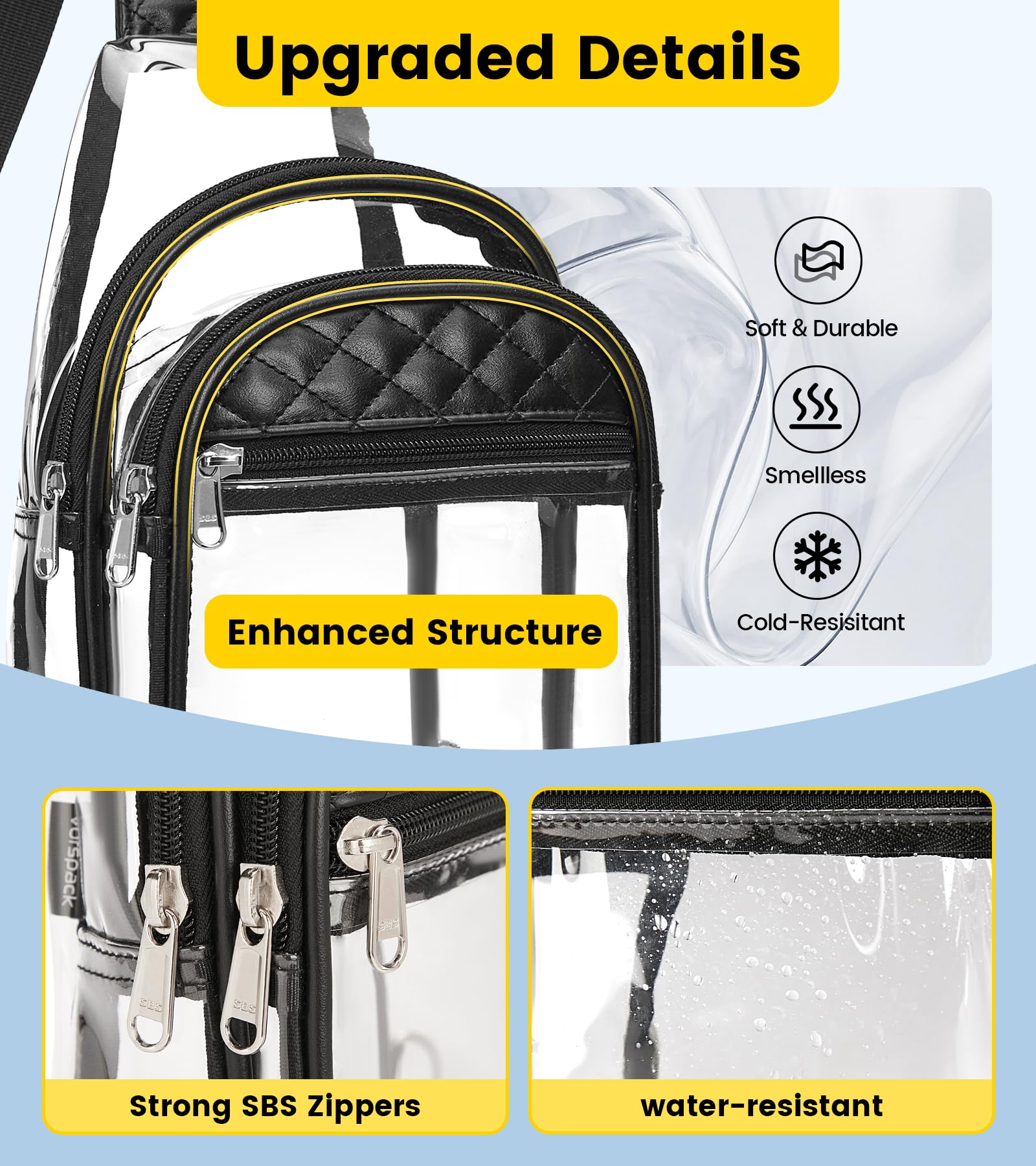 Stadium approved clear bag: This clear crossbody bag is designed to comply with most major venue regulations, measuring 11.5 x 6 x 5 inches – the ideal clear bag for concerts, festivals, and stadiums. Its transparent stadium bag design helps facilitate security checks while maintaining item visibility