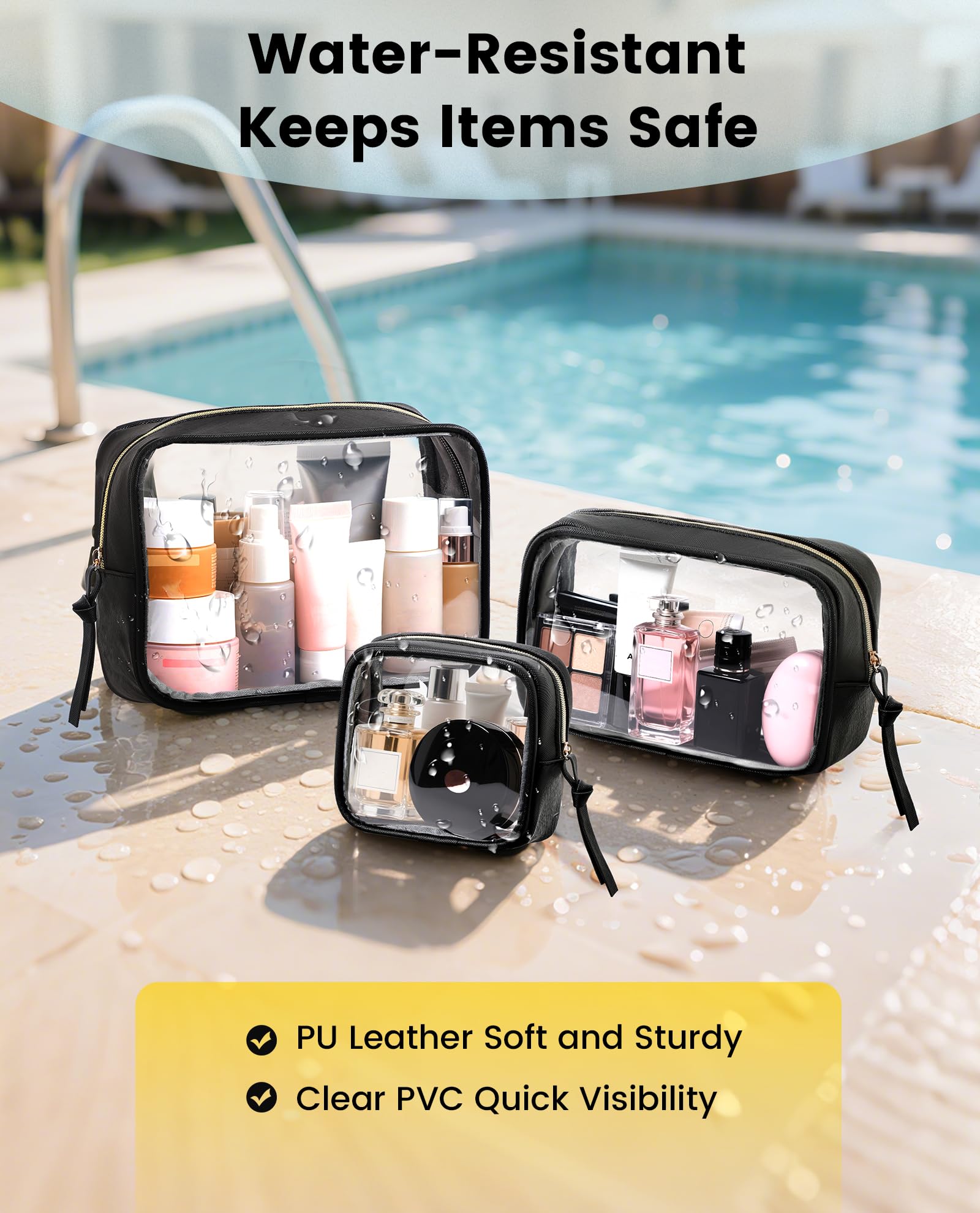 Clear side for easy location: Both sides of the travel makeup bag are made of PVC material, making it easier to spot your items and get through security checks quickly. Also, the PVC surface is easy to clean