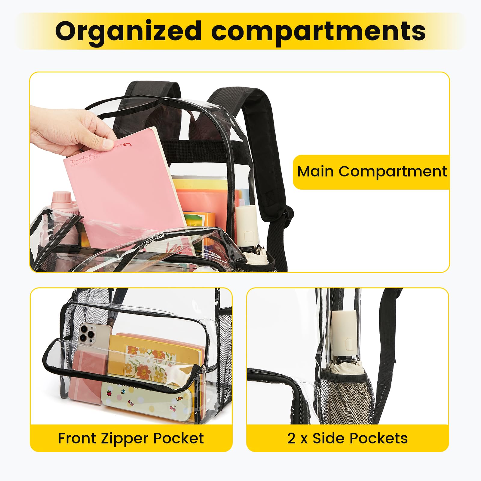 Multi-functional backpack: The clear backpack heavy duty is simple but functional, suitable for men, women, students, and kids. Use it as a school backpack, carry-on bag for travel, overnight backpack, or work backpack for any occasion.