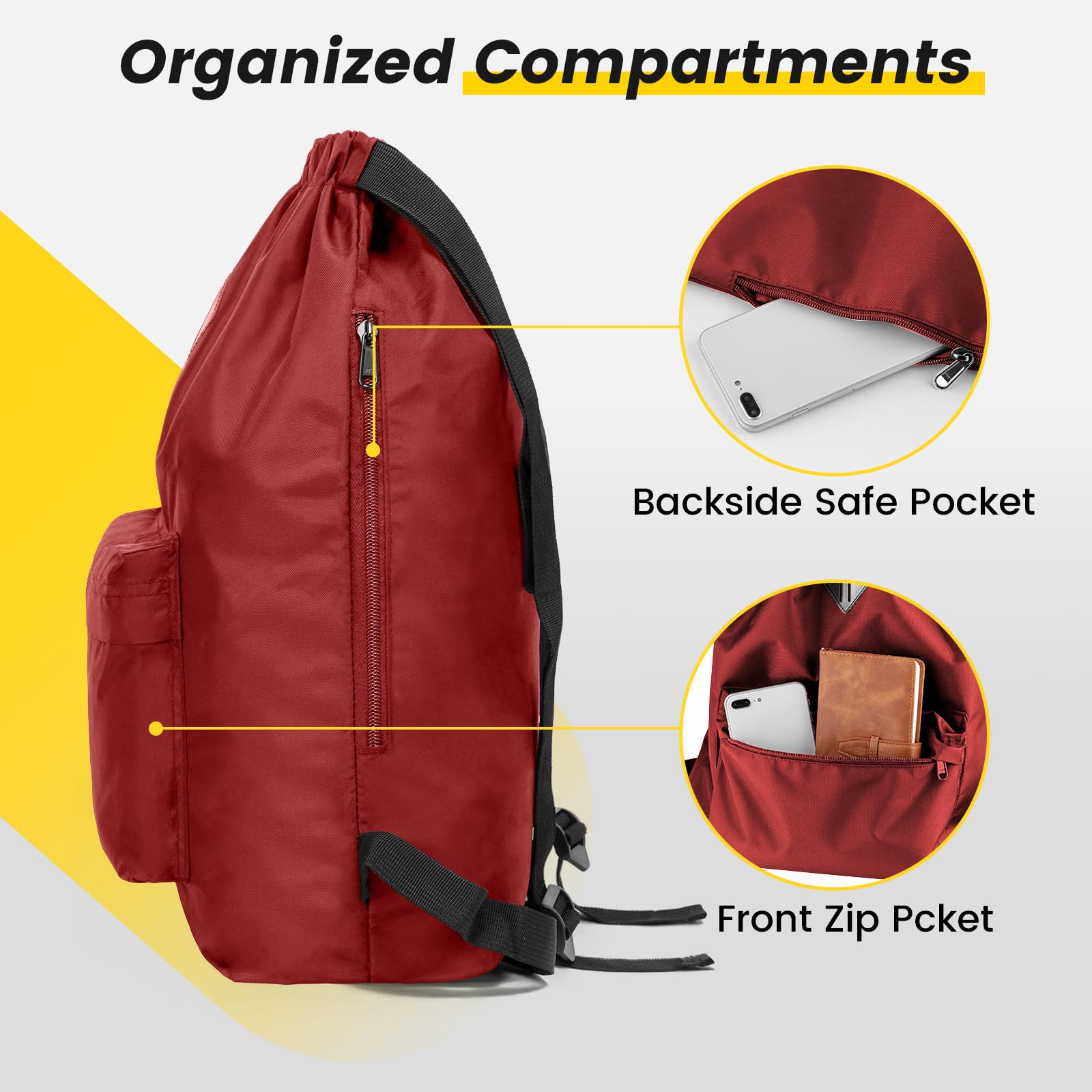 Sturdy & durable nylon: Made of quality nylon material way more sturdy than most other drawstring bags on the market, offers exceptional strength to hold up everything inside.