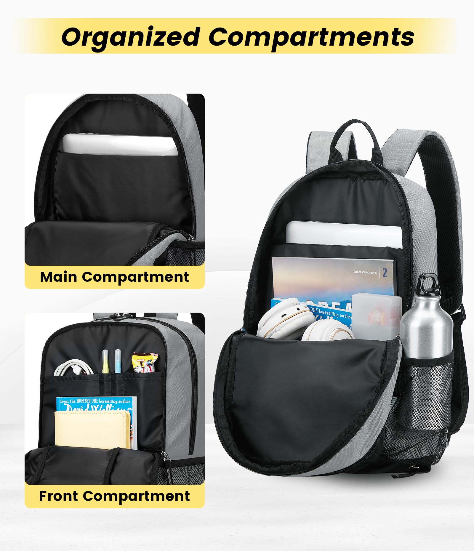 Multiple pockets commuter backpack: The everyday backpack provides spacious space for all your items and organizes them well. There are 1 large main compartment for daily items, 1 padded soft cushion compartment for folders, 1 front pocket for toiletries or travel documents, 1 separate pouch for shoes, and 2 side pockets for water bottles or folding umbrella