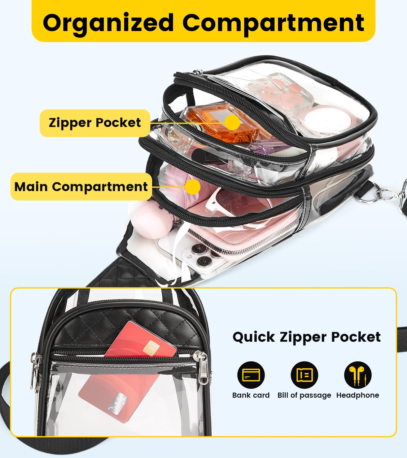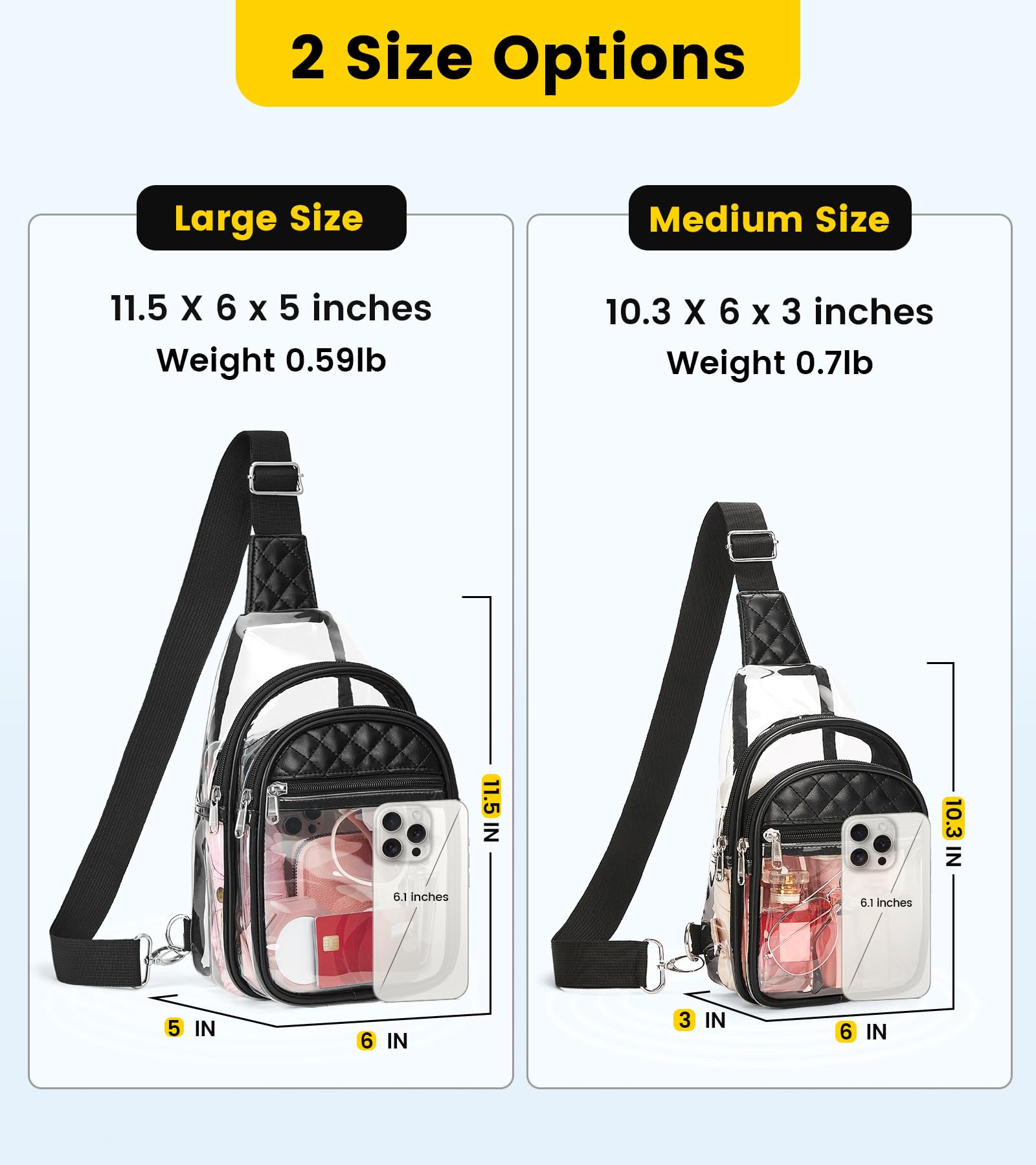 Stadium approved clear bag: This clear crossbody bag is designed to comply with most major venue regulations, measuring 11.5 x 6 x 5 inches – the ideal clear bag for concerts, festivals, and stadiums. Its transparent stadium bag design helps facilitate security checks while maintaining item visibility