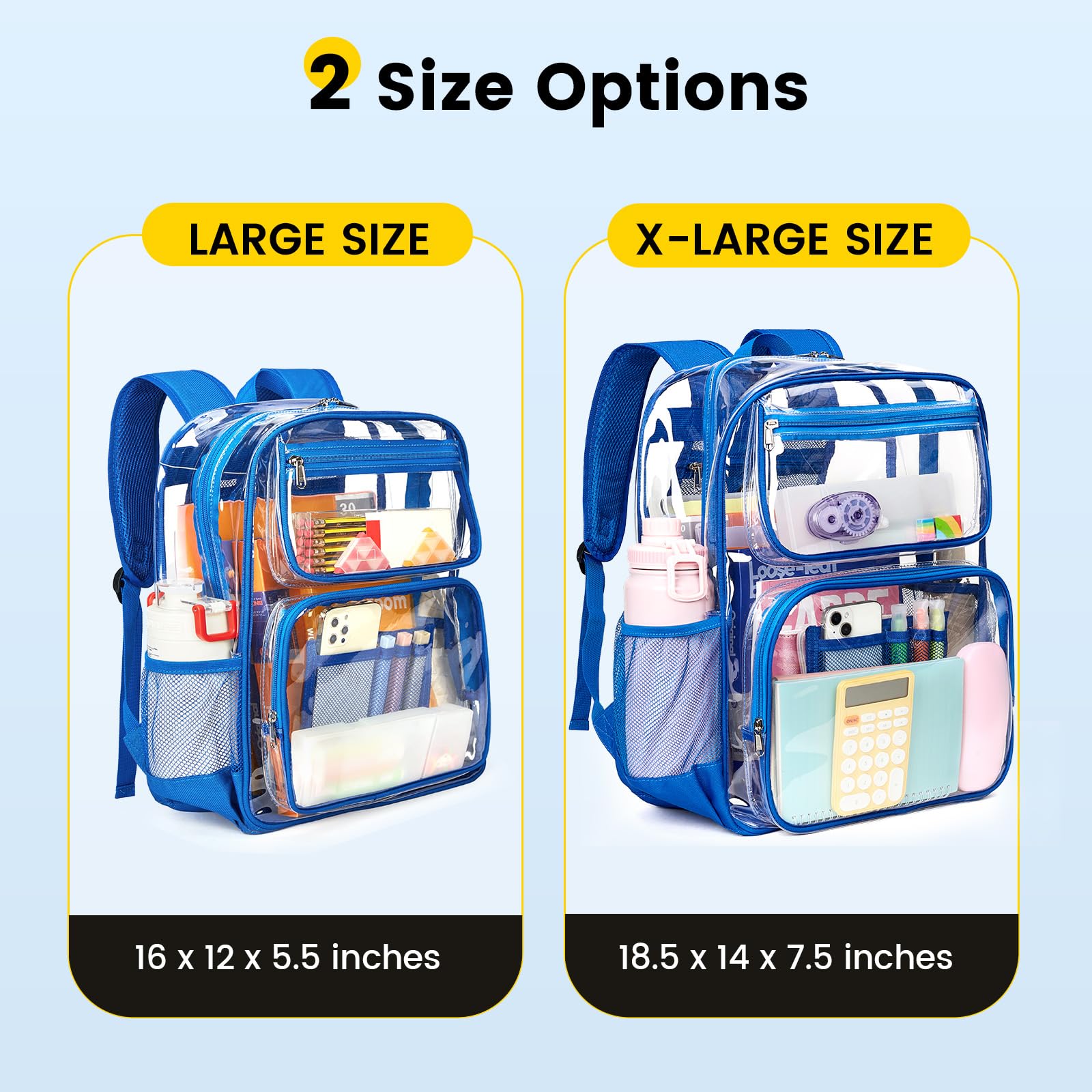 Versatile Use: Suitable for school, college, work, and travel. The transparent design allows for quick visual checks, making this see through backpack suitable for schools, workplaces, and other daily environments where visibility is required. It's also a practical choice for kids, students, and teachers during back-to-school season or birthdays
