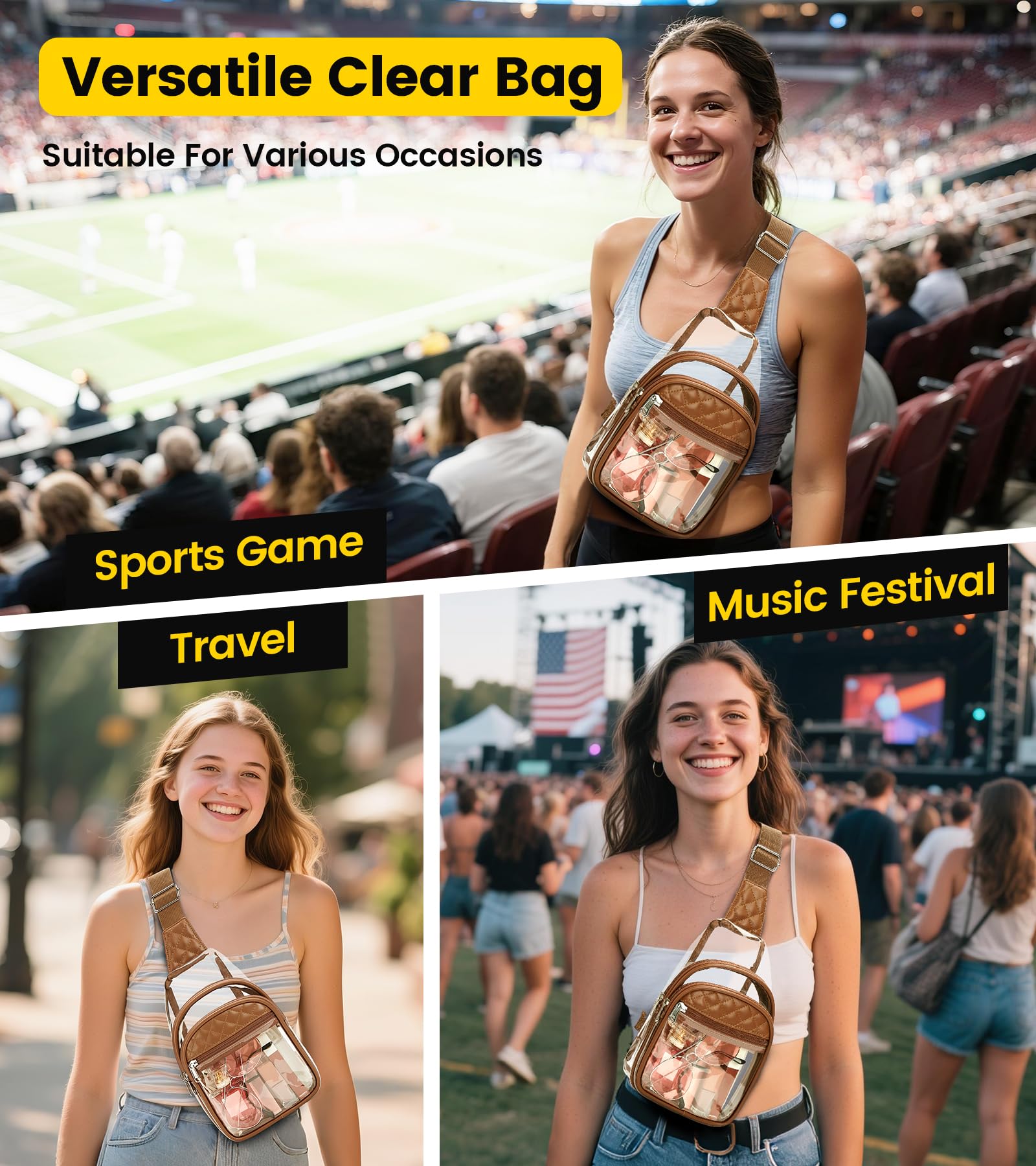 Stadium approved clear bag: This clear crossbody bag is designed to comply with most major venue regulations, measuring 10.3 x 6 x 3 inches – the ideal clear bag for concerts, festivals, and stadiums. Its transparent stadium bag design helps facilitate security checks while maintaining item visibility