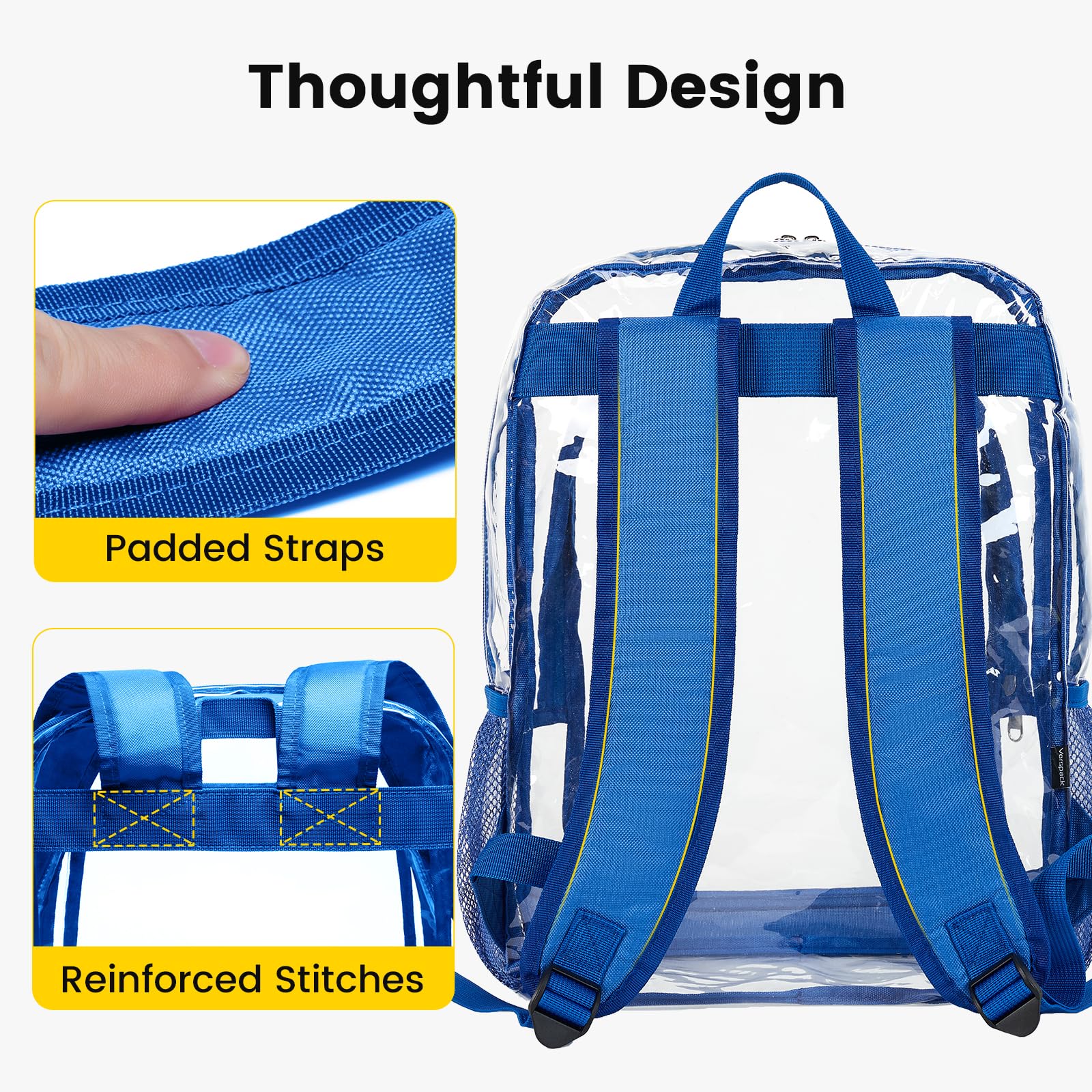 Comfortable & Lightweight: This clear bookbag for boys features padded adjustable shoulder straps to help reduce pressure on shoulders during longer wear. A sturdy carry handle offers an easy grabbing option. Besides, this large clear backpack is lightweight at 0.84 lbs to avoid adding extra burden