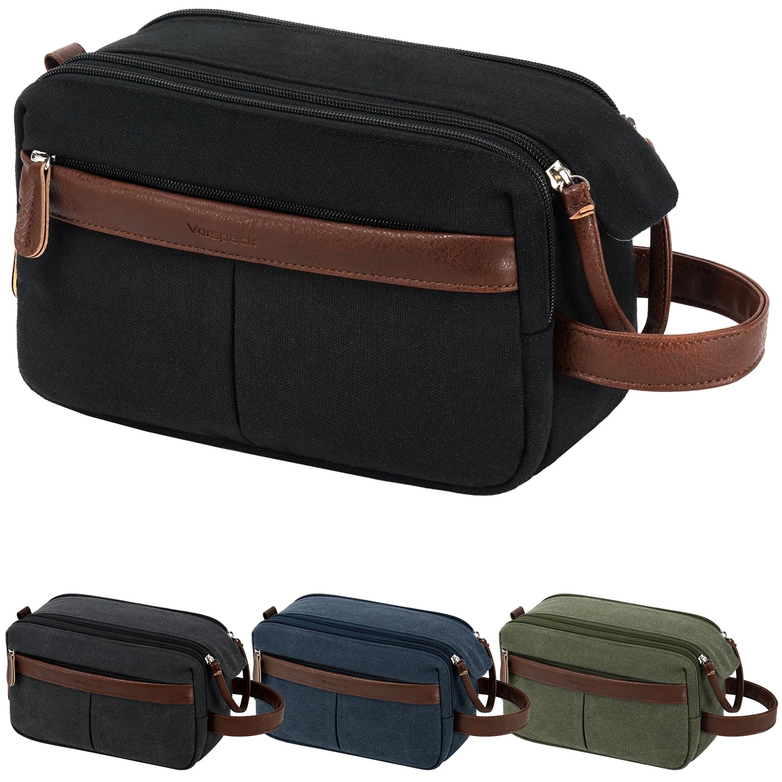 • Vorspack Canvas Toiletry Bag for Men - Water Resistant Travel Bag for Toiletries, Bathroom Essentials, Accessories - Black