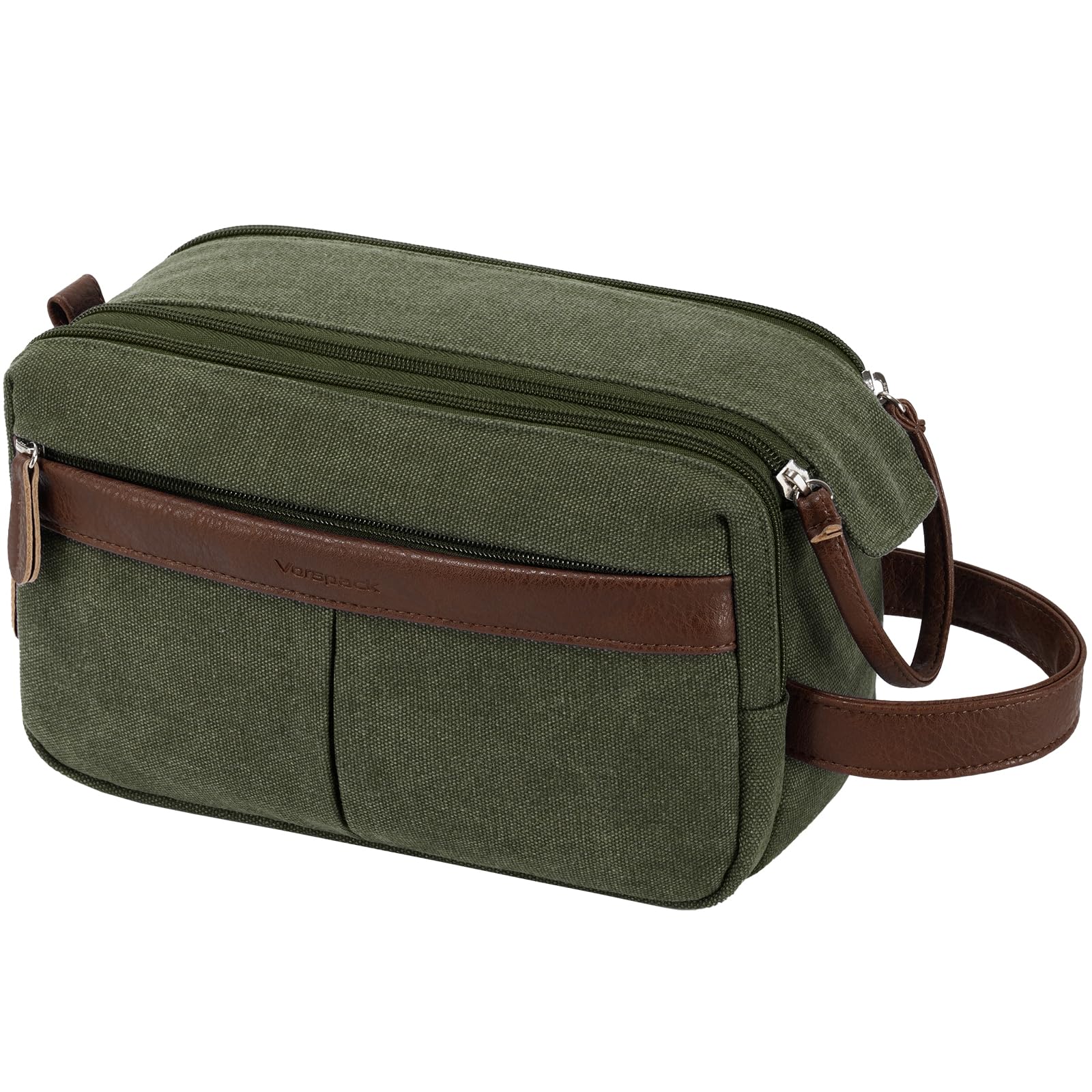 • Vorspack Canvas Toiletry Bag for Men - Water Resistant Travel Bag for Toiletries, Bathroom Essentials, Accessories - Green