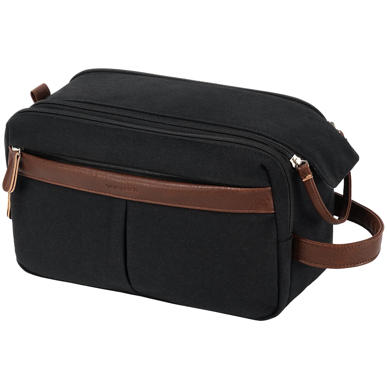 Vorspack Canvas Toiletry Bag for Men - Water Resistant Travel Bag for Toiletries, Bathroom Essentials, Accessories - Black