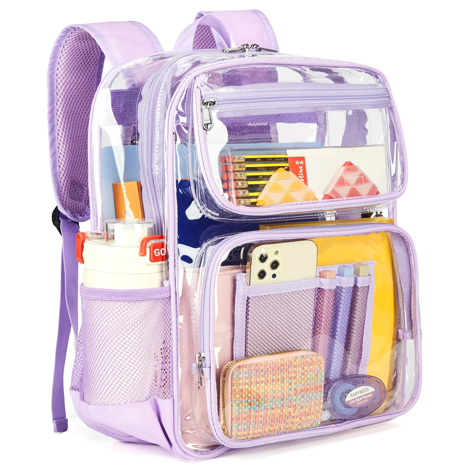 Vorspack Clear Backpack Heavy Duty - Large See Through Bookbag for Girls, Transparent Backpacks for School, College, Work, Travel - Purple