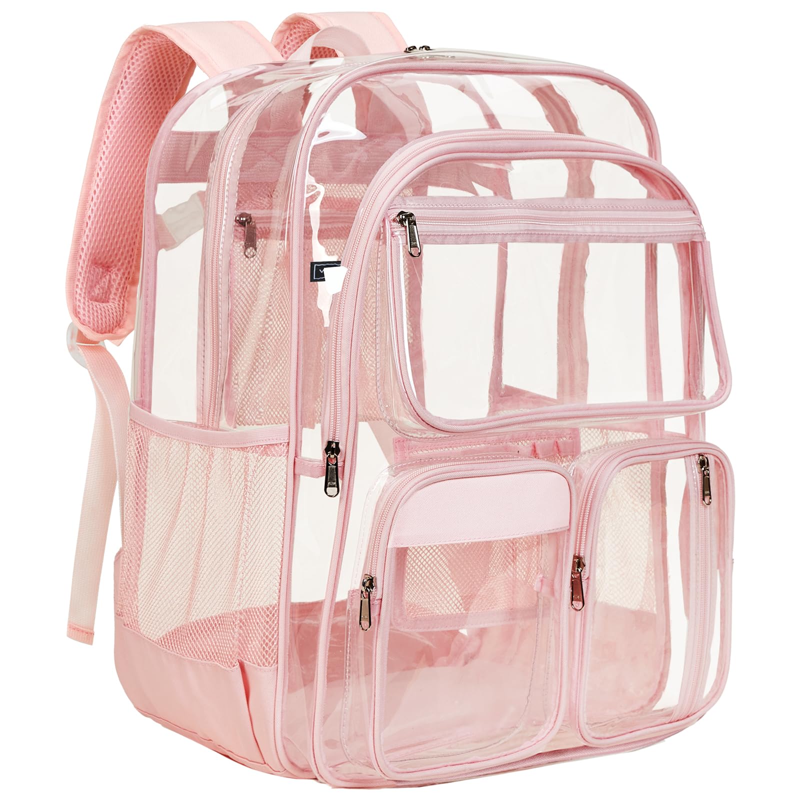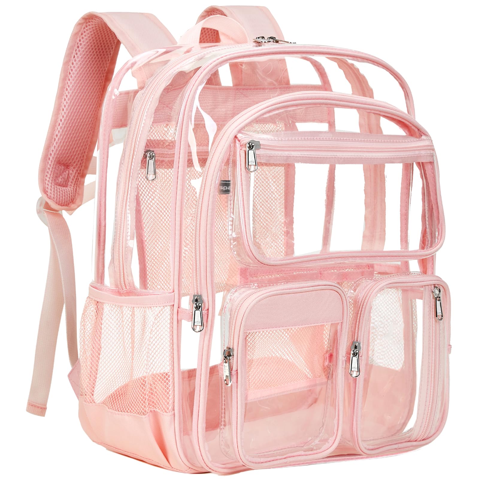 • Vorspack Clear Backpack for School - Heavy Duty Clear Bookbag for Girls Boys Extra Large Multi-Pocket See Through Backpacks for Teens, Travel, Work, Festival - Light Pink