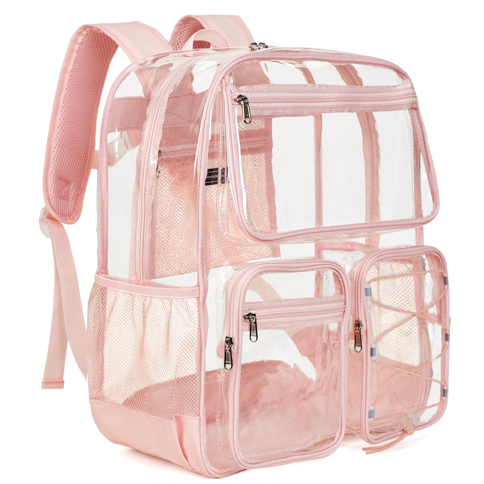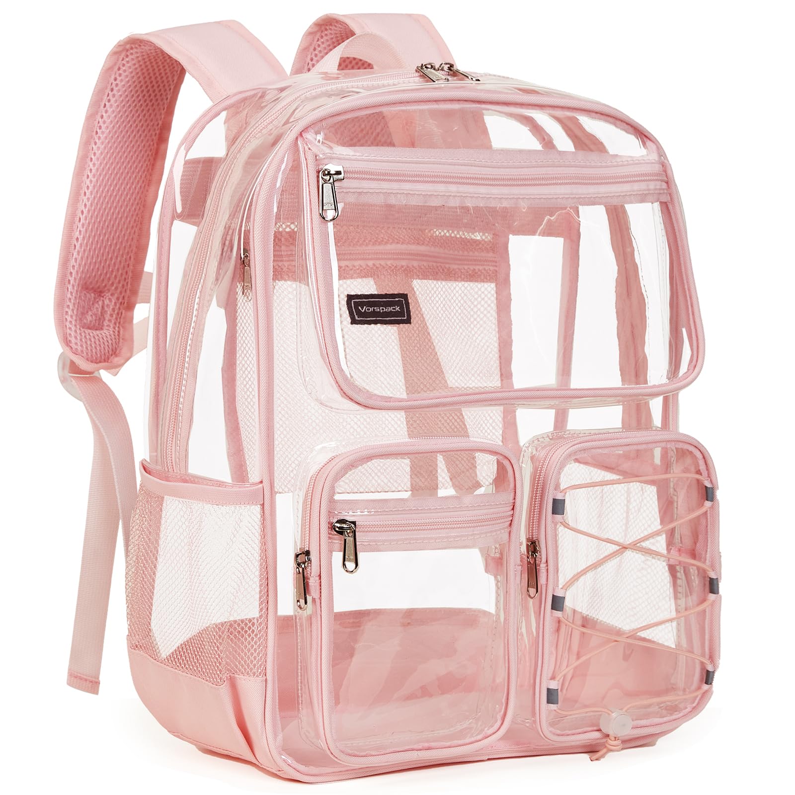 • Vorspack Clear Backpack for School - Heavy Duty Clear Bookbag for Girls Boys Large Multi-Pocket See Through Backpacks for Teens, Travel, Work, Festival - Light Pink