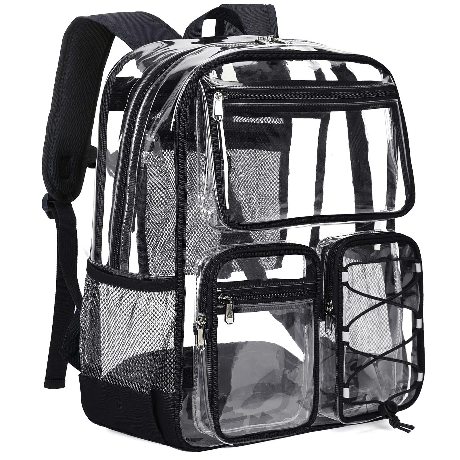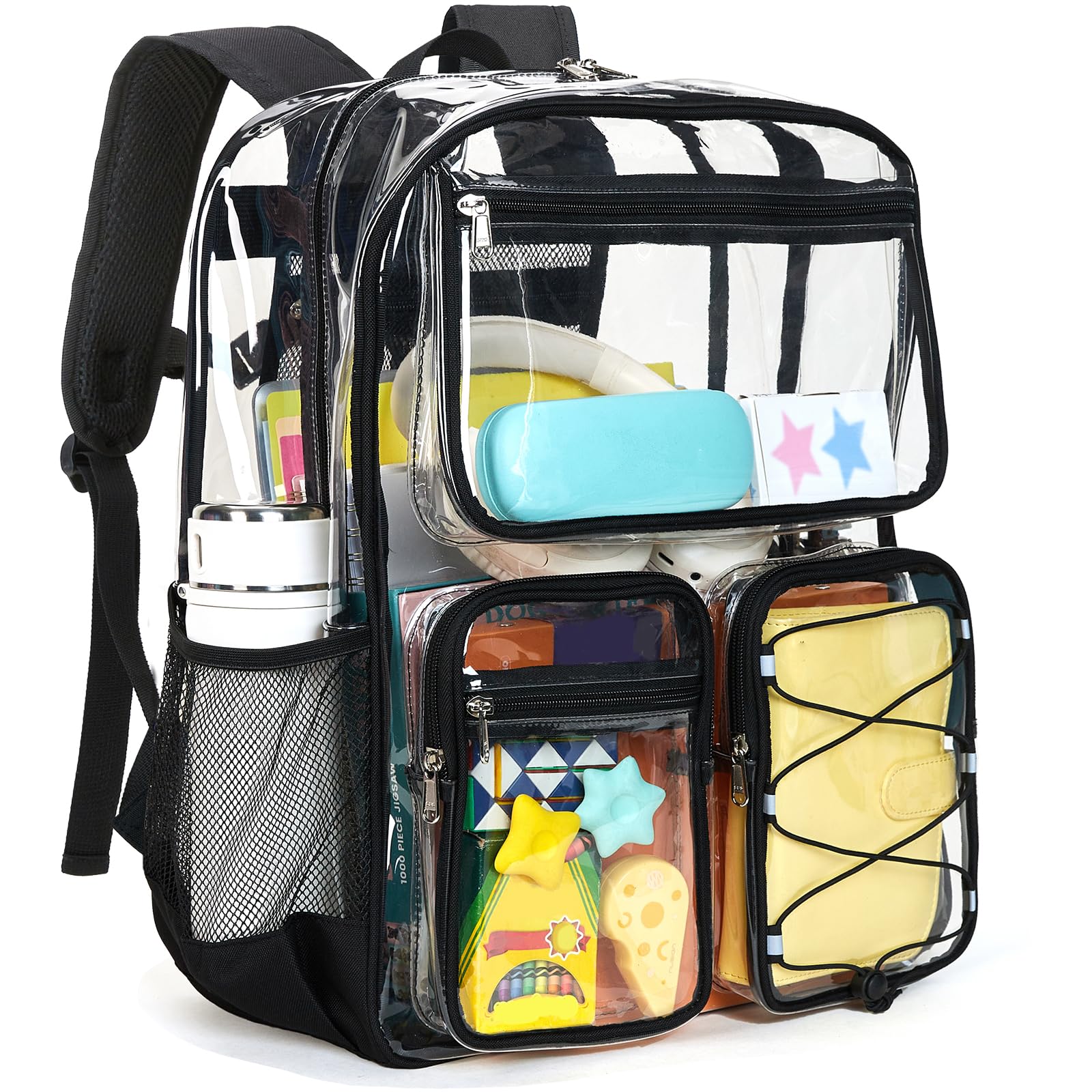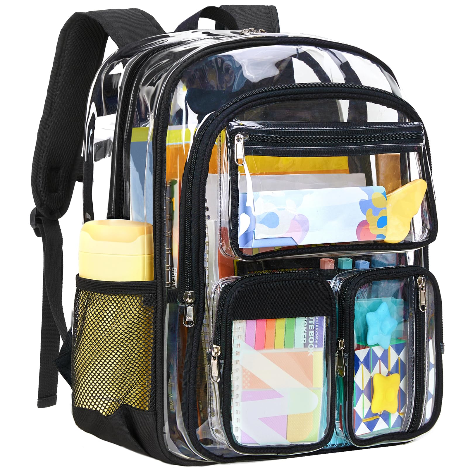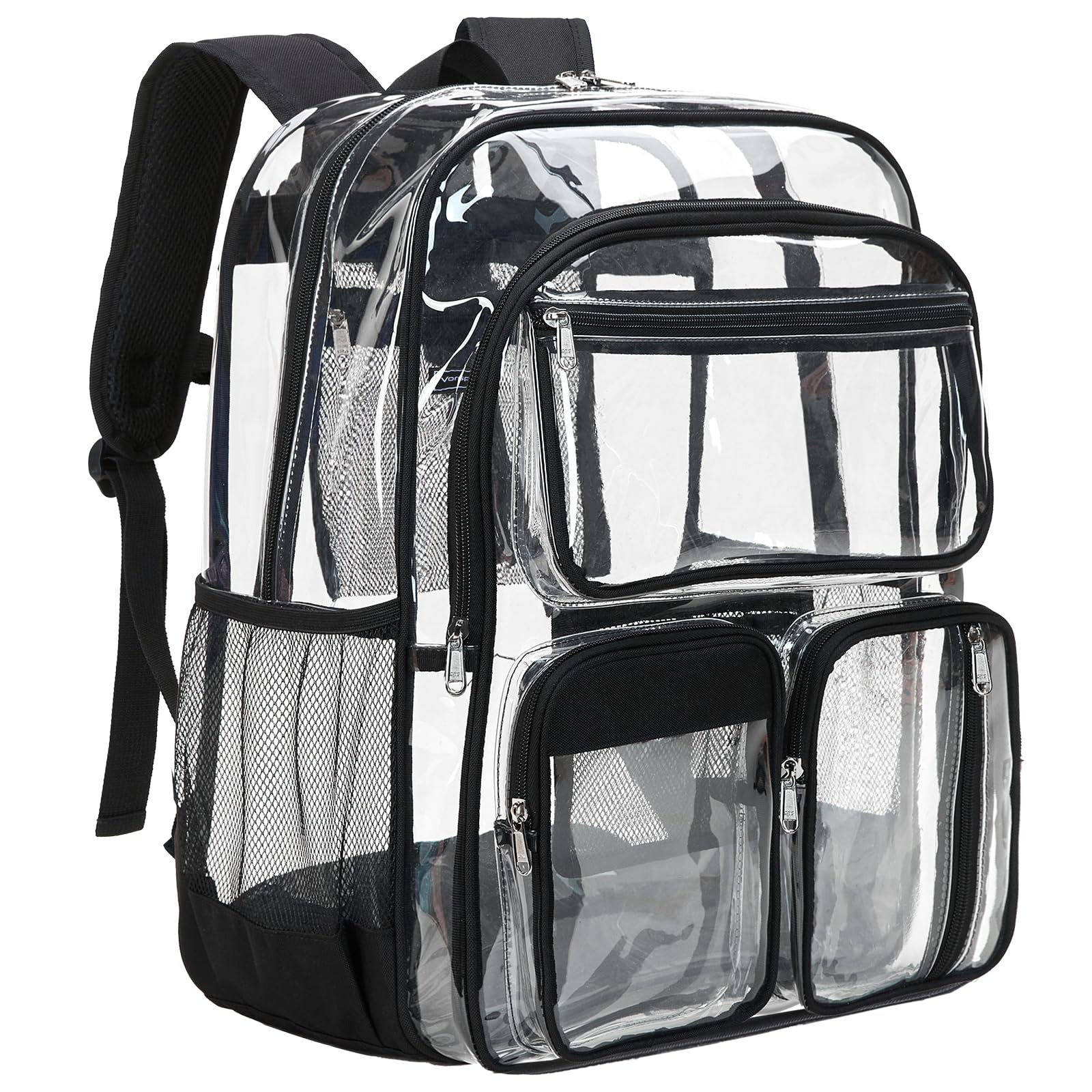 • Vorspack Clear Backpack for School - Heavy Duty Clear Bookbag for Girls Boys Large Multi-Pocket See Through Backpacks for Teens, Travel, Work, Festival - Black