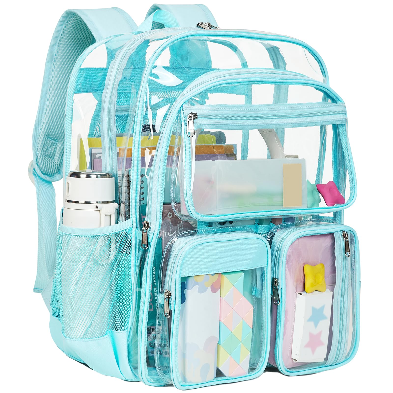 • Vorspack Clear Backpack for School - Heavy Duty Transparent Bookbag for Girls Boys Extra Large See Through Backpacks for Teens, Work, Travel, Festival - Sky Blue
