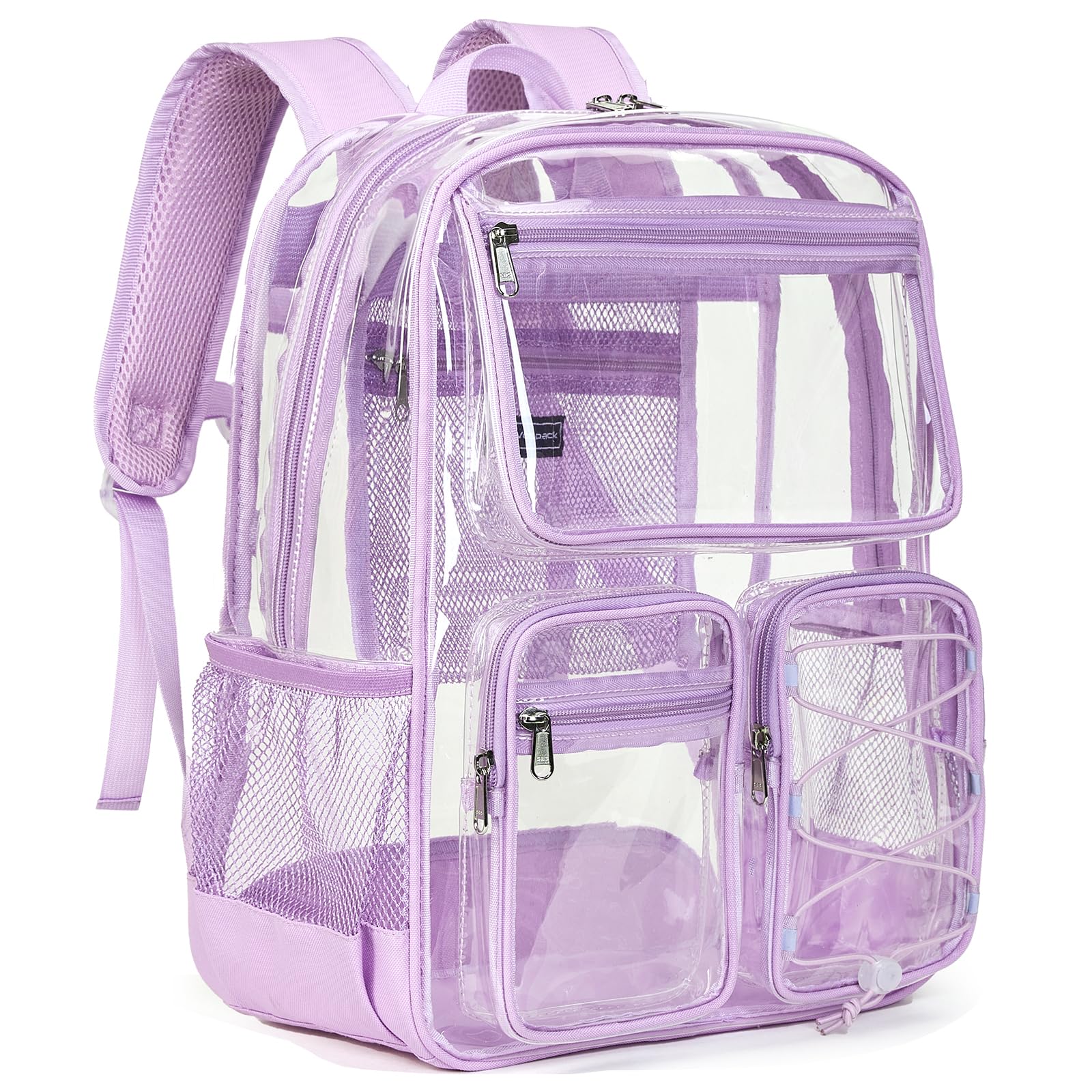• Vorspack Clear Backpack for School - Heavy Duty Clear Bookbag for Girls Boys Large Multi-Pocket See Through Backpacks for Teens, Travel, Work, Festival - Purple