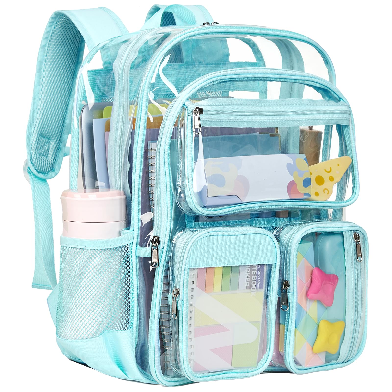 • Vorspack Clear Backpack for School - Heavy Duty Transparent Bookbag for Girls Boys Large See Through Backpacks for Teens, Work, Travel, Festival - Sky Blue