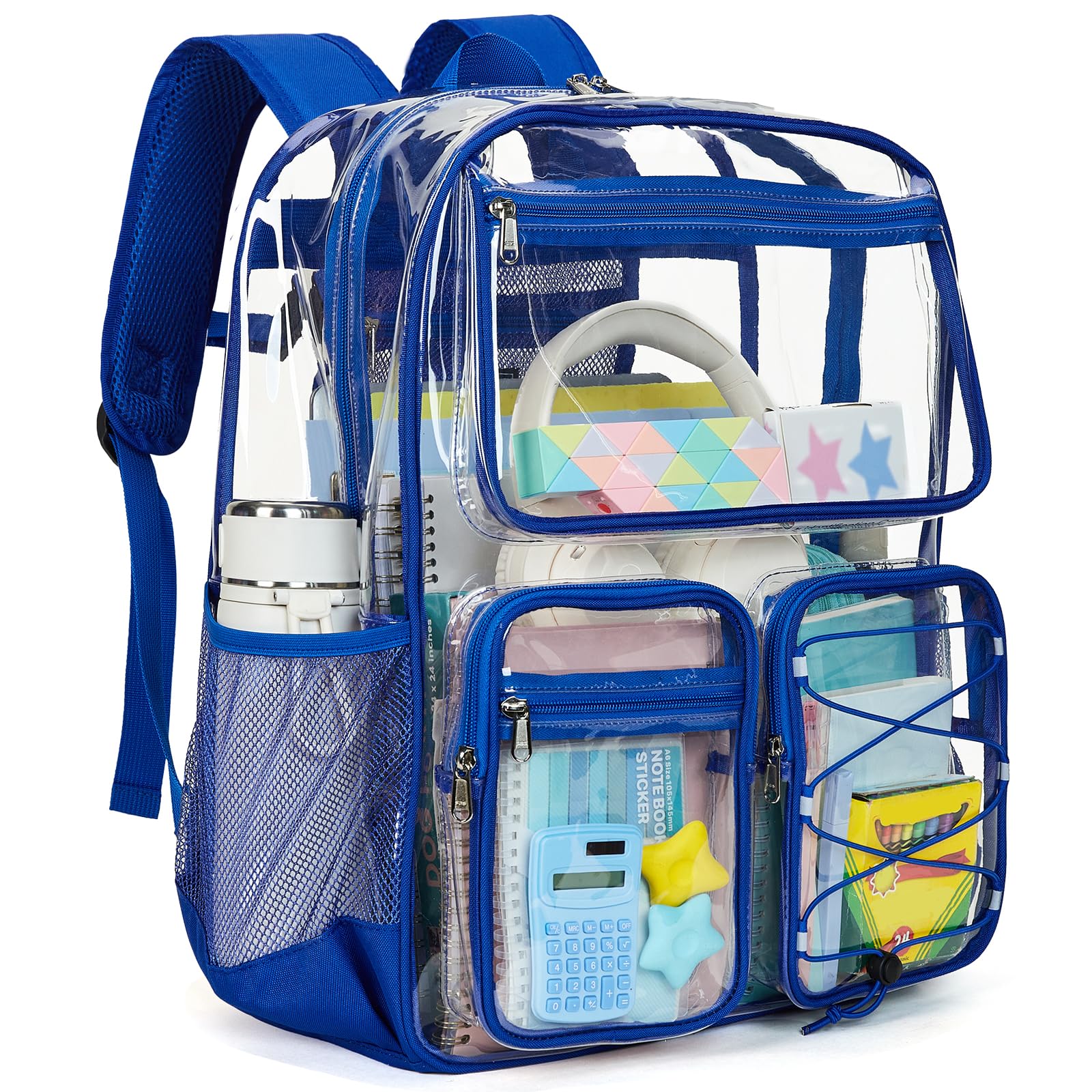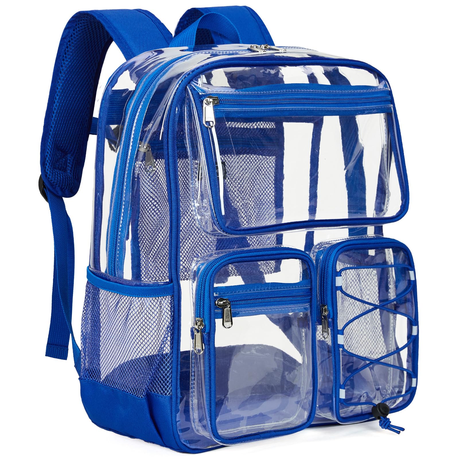 • Vorspack Clear Backpack for School - Heavy Duty Clear Bookbag for Girls Boys Large Multi-Pocket See Through Backpacks for Teens, Travel, Work, Festival - Blue