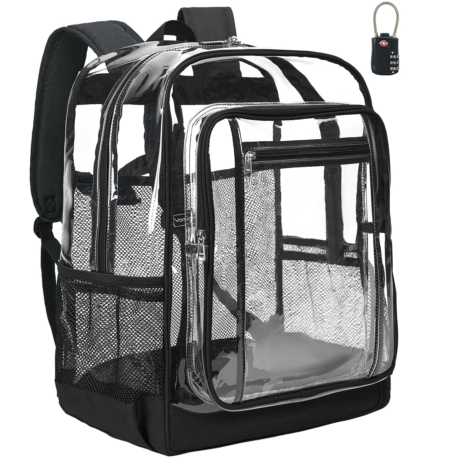 • Vorspack Clear Backpack Heavy Duty - Extra Large Clear Backpacks with TSA Lock Transparent See Through Bookbag for College, Work, Travel - Black