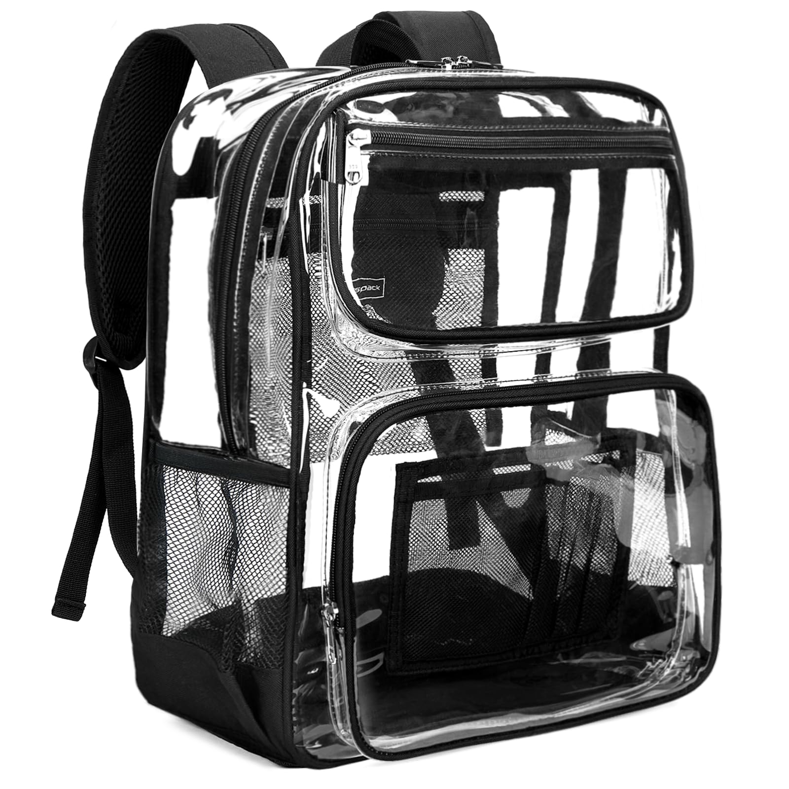 Vorspack Clear Backpack Heavy Duty - Extra Large Clear Backpacks with TSA Lock Transparent See Through Bookbag for School, Work, College, Travel - Black
