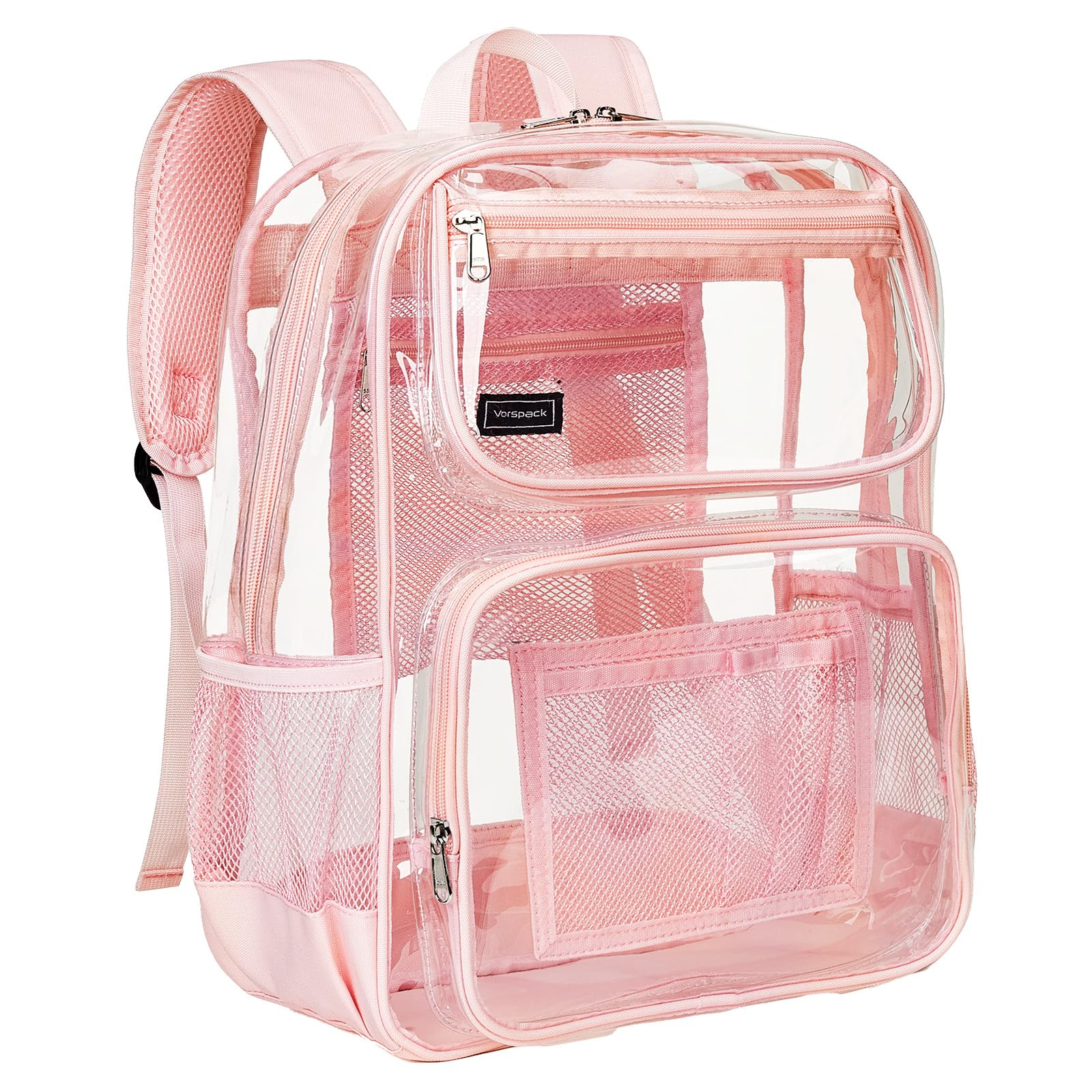 Vorspack Clear Backpack Heavy Duty - Large See Through Bookbag for Girls, Transparent Backpacks for School, College, Work, Travel - Pink