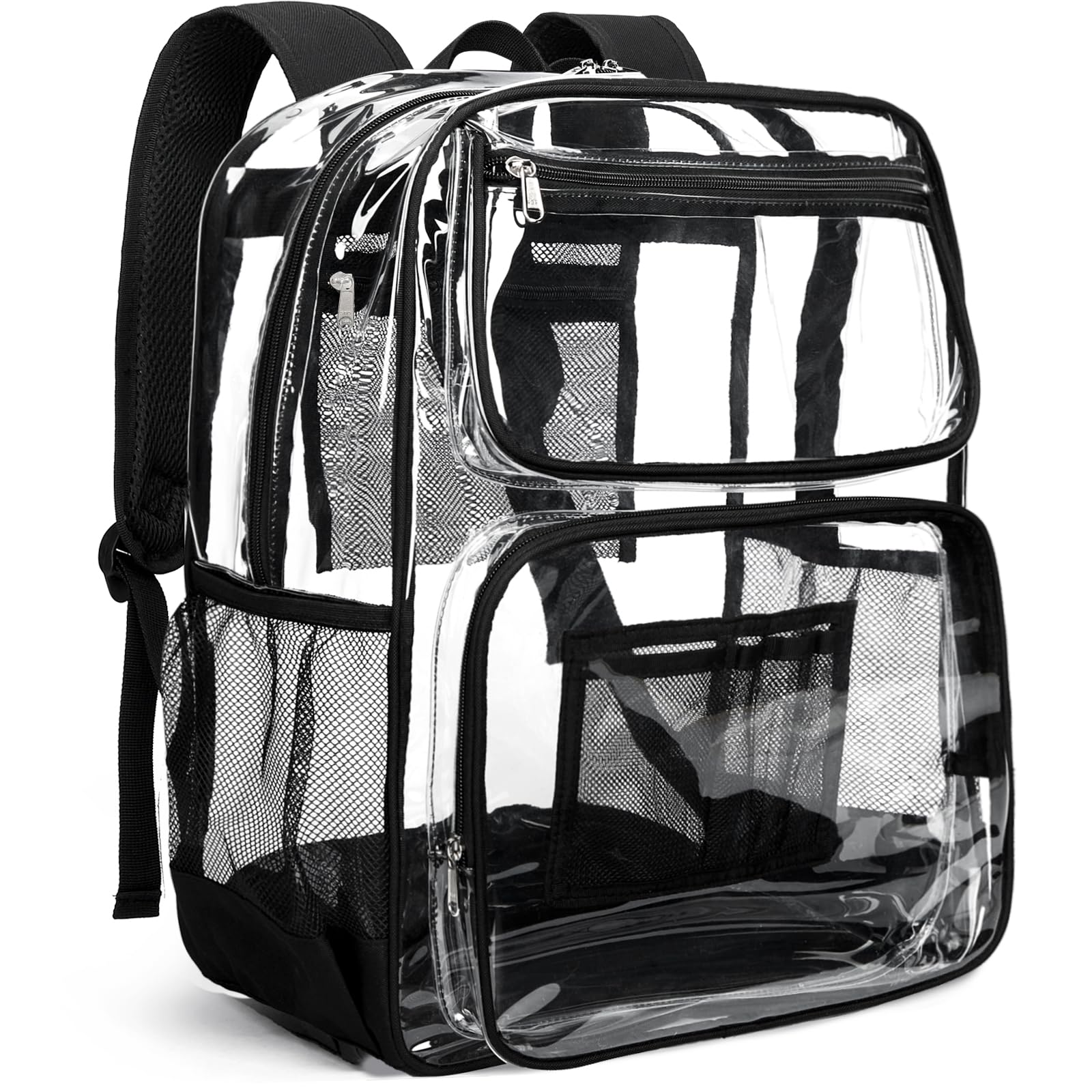 Vorspack Clear Backpack Heavy Duty - Extra Large See Through Bookbag for Girls Boys, Transparent Backpacks for School, College, Work, Travel - Black