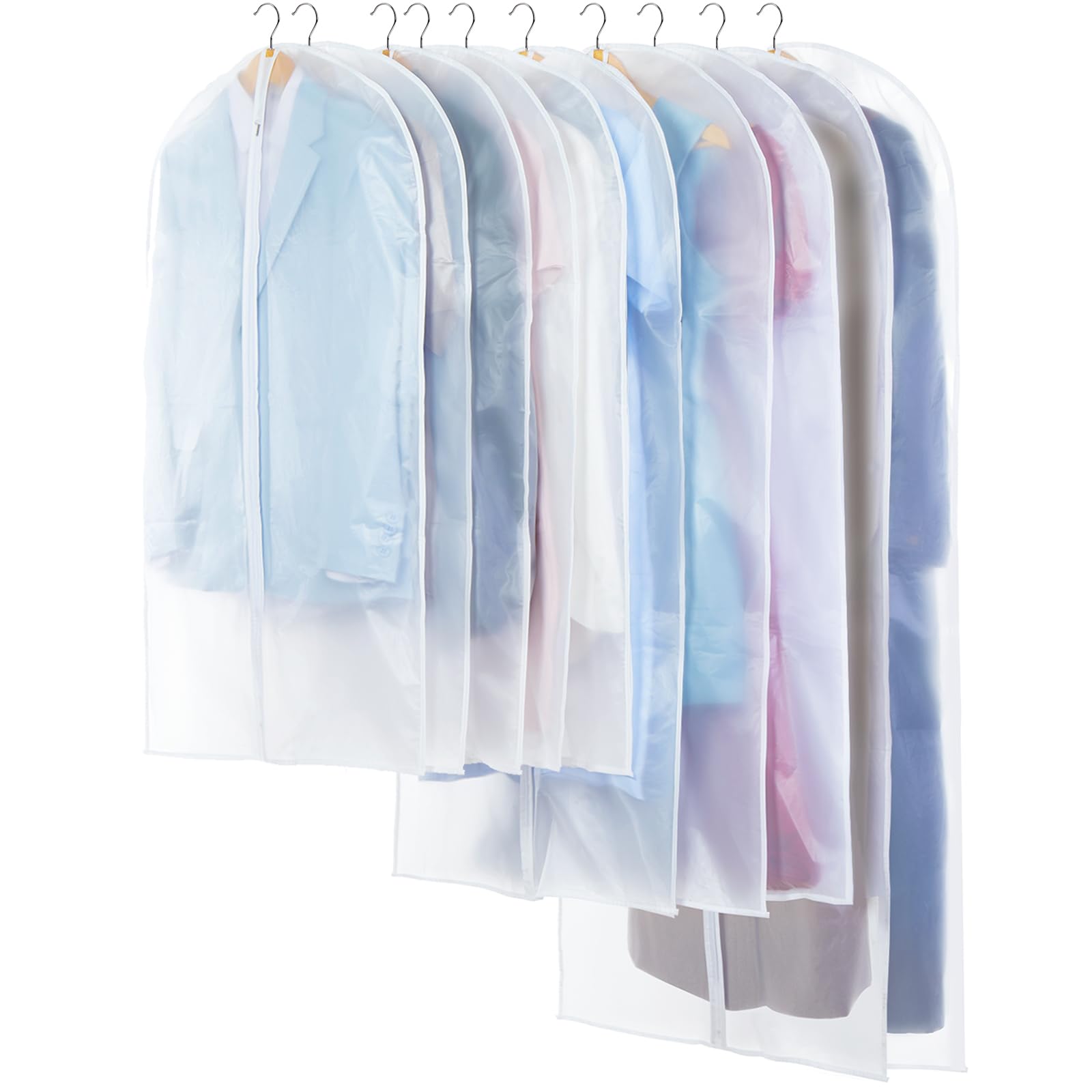 Carbrea Translucent Garment Bags for Hanging Clothes - Frosted Clothes Storage Bags for Suits, Dresses, Closet Storage - 10 Pack